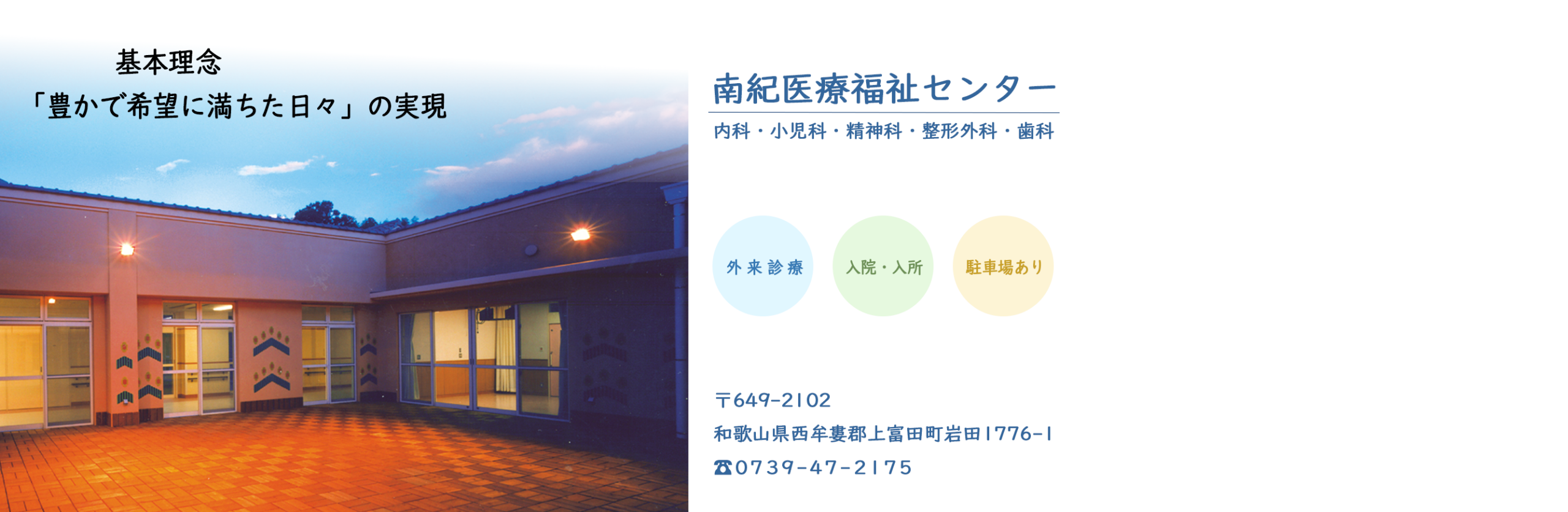 当センターは、西牟婁郡上富田町の所在する児童施設であり、和歌山県の田辺・西牟婁圏域や日高圏域および新宮・東牟婁圏域に於ける重傷心身障害児を対象とした唯一の医療機関であり、その責務を担っています。